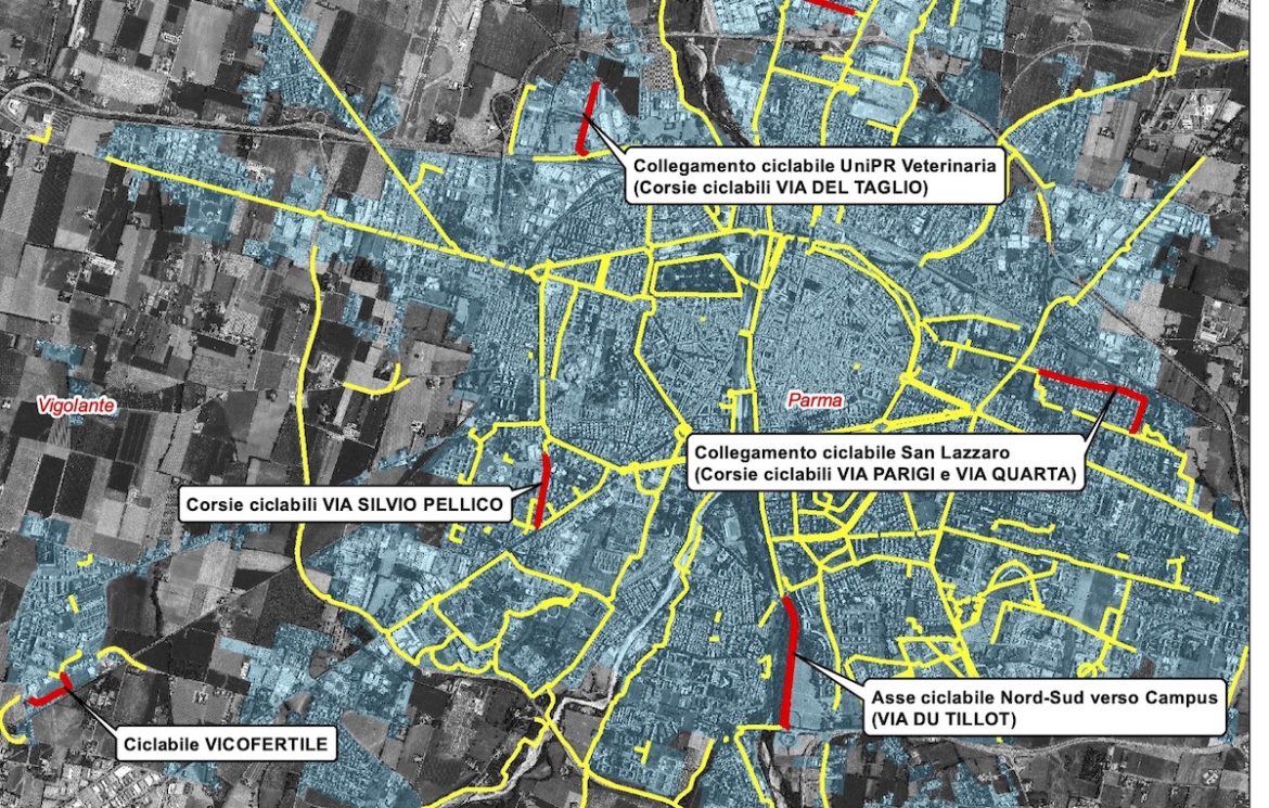 La Giunta di Parma ha approvato lo studio di fattibilità per la realizzazione di oltre dieci chilometri di piste ciclabili; si tratta di un progetto di 2.262.602 di euro, finanziato dal PNRR (Piano Nazionale di Ripresa e Resilienza).