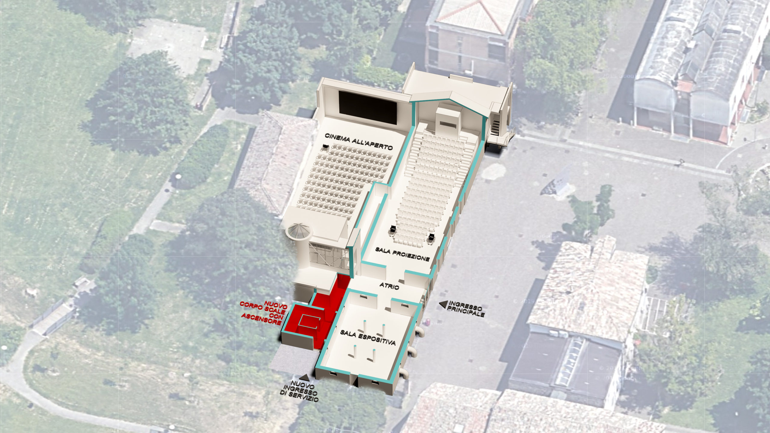 Grazie alla ristrutturazione verranno ampliati gli spazi al primo piano dove è prevista una Sala Polifunzionale aperta al pubblico e altri spazi da adibire ad uffici.