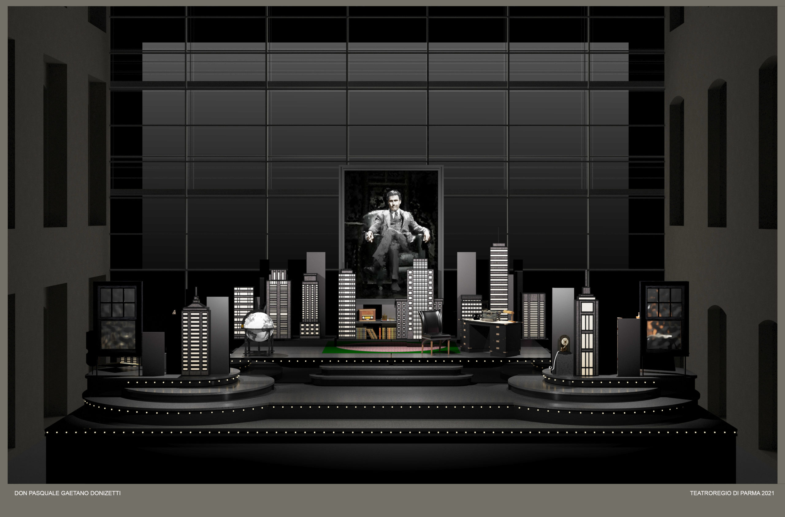 L’opera del compositore bergamasco torna a Parma dopo 28 anni in un nuovo allestimento firmato da Pier Francesco Maestrini e realizzato in coproduzione con l’Ente Luglio Musicale Trapanese, con scene e video di Guillermo Nova, i costumi di Luca Dall’Alpi, le luci di Andrea Borelli, i movimenti coreografici di Michele Cosentino. Ferdinando Sulla, sul podio dell’Orchestra dell’Emilia-Romagna Arturo Toscanini e del Coro del Teatro Regio di Parma, preparato da Martino Faggiani, dirige la partitura nella riduzione orchestrale di Casa Ricordi a cura di Enrico Minaglia, con protagonisti Laura Giordano (Norina), Antonio Mandrillo (Ernesto), Federico Longhi (Don Pasquale), Pablo Galvez (Dottor Malatesta), Giulio Riccò (Notaio).