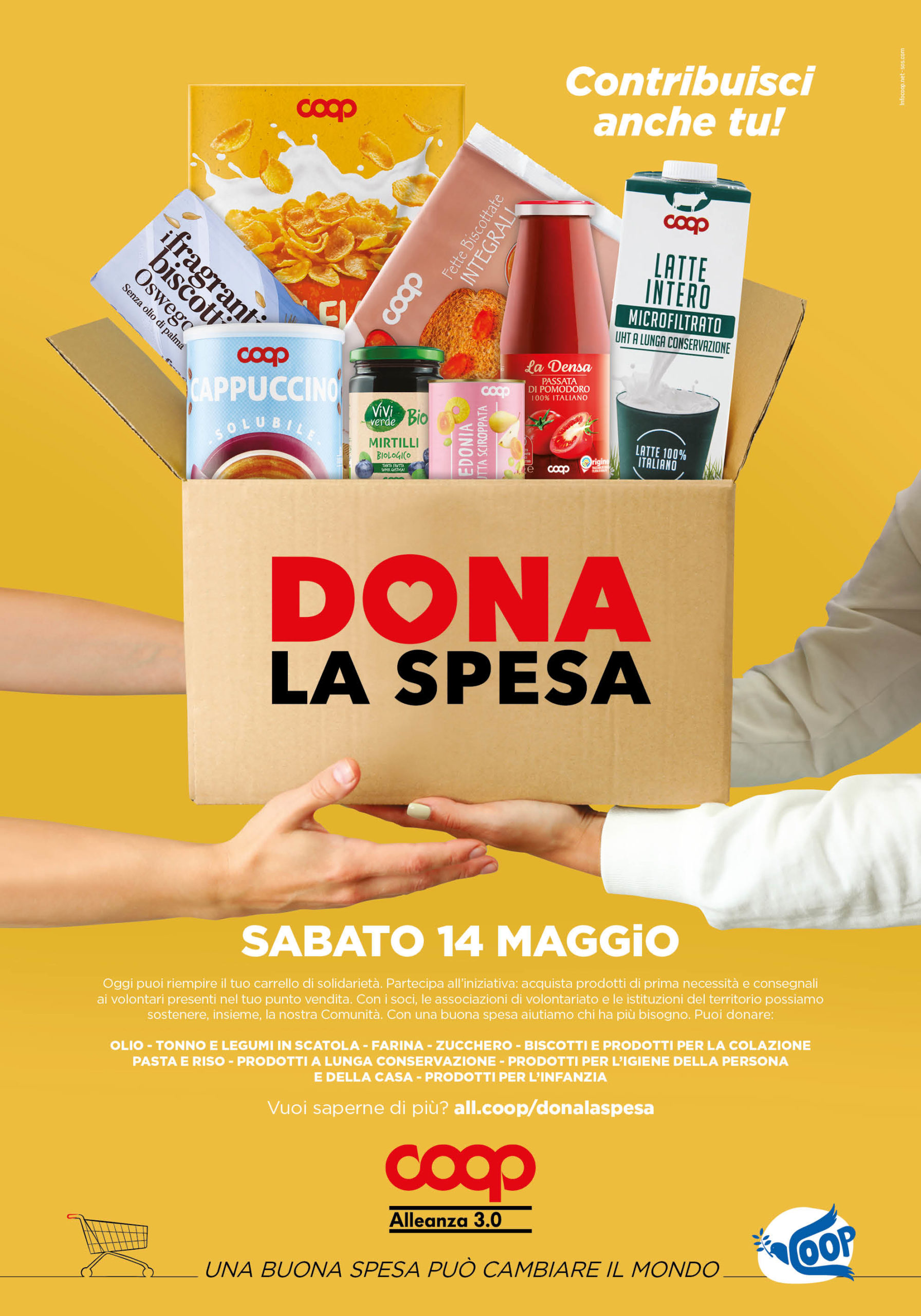 Spazio alla solidarietà sabato 14 maggio in oltre 300 negozi di Coop Alleanza 3.0 con “Dona la spesa”, l’iniziativa di raccolta di generi alimentari di Coop Alleanza 3.0, che trasforma un’attività quotidiana come fare la spesa in una scelta di valore per sostenere chi si trova in difficoltà.