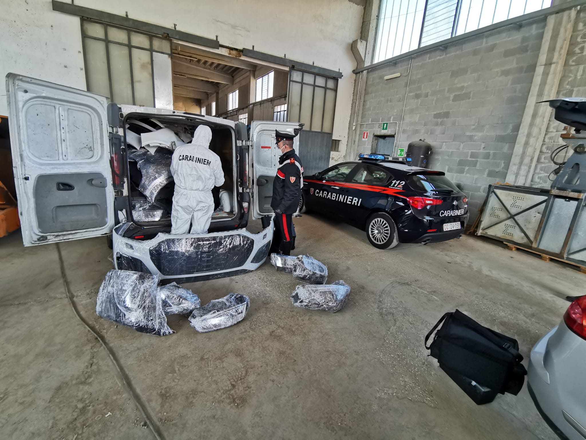Poiché, erano prossimi ad allontanarsi e nell’impossibilità di aspettare i rinforzi, i militari hanno rotto gli indugi e si sono avvicinati velocemente. I delinquenti, vistisi scoperti, sono balzati di nuovo in macchina e sono partiti a tutta velocità, sfrecciando in direzione dell’autostrada facendo perdere le loro tracce. Sul posto è rimasto il furgone che una volta aperto è stato trovato carico di pezzi di ricambio di autovetture, di marche prestigiose, presumibilmente rubate in tutta la provincia e stipate all’inverosimile all’interno pronti per lasciare l’Italia. Una volta svuotato si è inventariato un totale di oltre 100 pezzi per autovetture Audi, Mercedes, BMW. In particolare: targhe rubate, kit airbag, gruppi ottici, navigatori, volanti, carene anteriori e posteriori, sottoscocche e paraurti per un valore complessivo di 150.000 €.