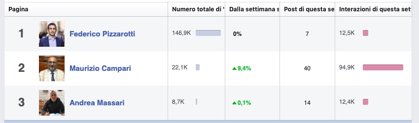 Lo rivela direttamente Facebook rendendo pubblico il numero delle interazioni settimanali, che è l’unico parametro oggettivo e confrontabile per valutare la potenzialità comunicativa e penetrativa di una pagina (le interazioni sono un numero dato dalla sommatoria di condivisioni + like + commenti + altro).