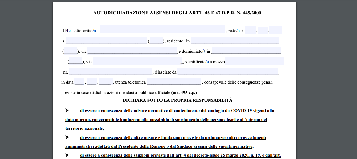 SCARICA MODULO AUTOCERTIFICAZIONE!