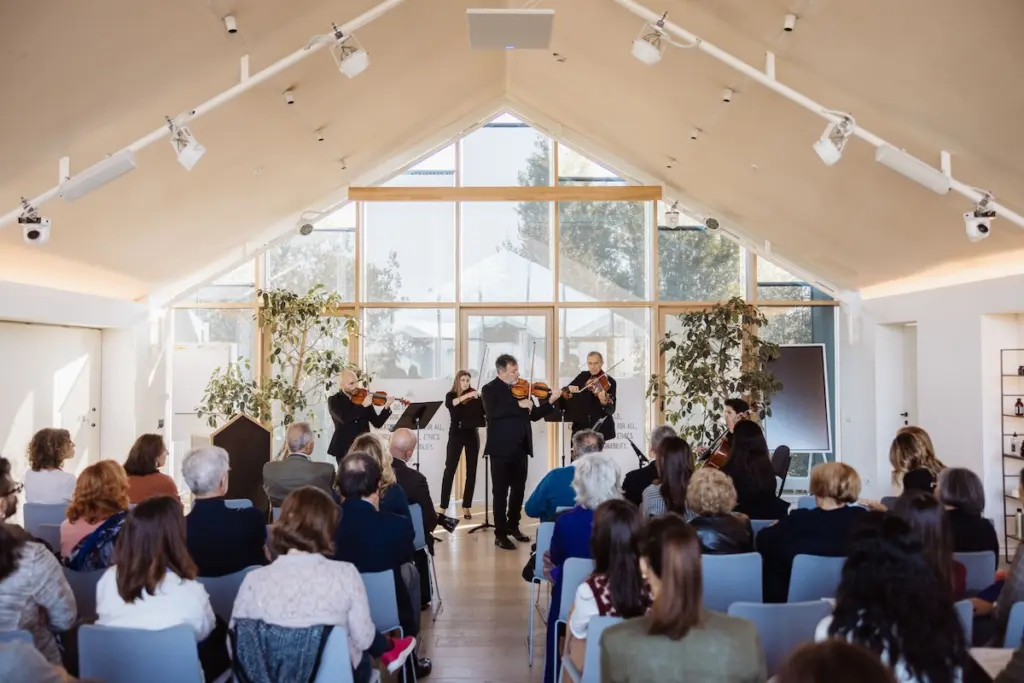 L’incontro di presentazione del progetto Ecosounds – La Natura suona si è concluso con una performance dell’Ensemble di Archi de La Toscanini, composto da Daniele Ruzza (violino solista), Alessandro Cannizzaro (violino primo), Camilla Mazzanti (violino secondo), Diego Spagnoli (viola) e Martino Maina (violoncello), che ha interpretato una selezione da Le Quattro Stagioni di Antonio Vivaldi.
