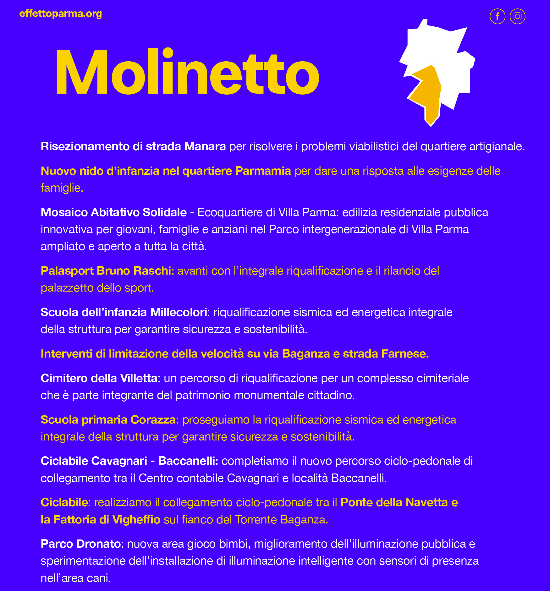 Attorno a via La Spezia si snoda il quartiere Molinetto, uno dei più popolosi della città. Sarà qui che prenderà vita il Mosaico Abitativo Solidale, un vero e proprio ecoquartiere che prenderà vita nel contesto di Villa Parma. Si tratta di un progetto di edilizia residenziale pubblica pensato in chiave innovativa dedicato a giovani, famiglie e anziani. Nel nostro programma abbiamo parlato dell’importanza di avere strutture scolastiche moderne, per questo riqualificheremo la Scuola dell’infanzia Millecolori, sia in chiave antisismica che energetica, e lo stesso faremo per la Scuola primaria Corazza.