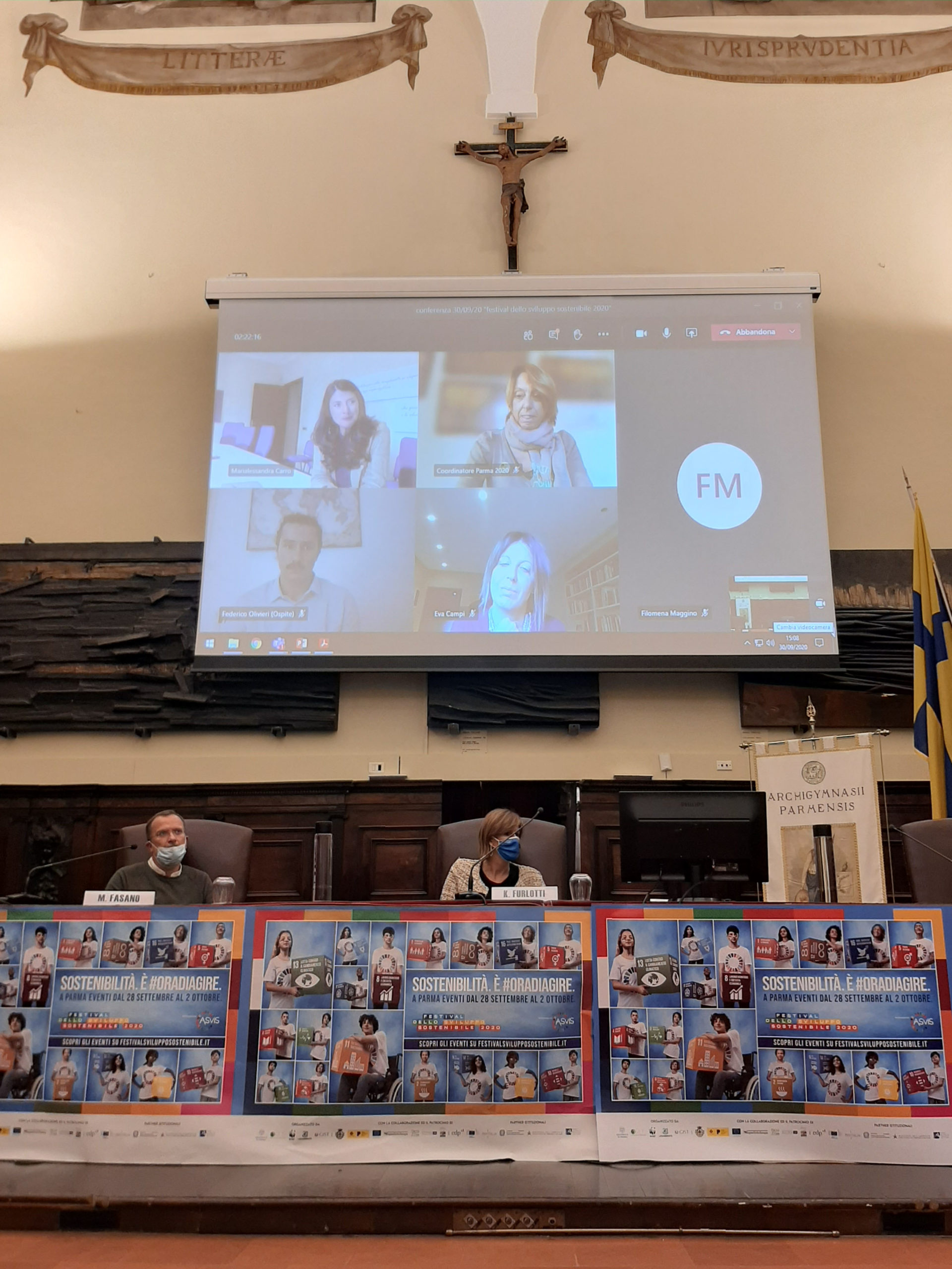 Non è mancata la presenza dell’Università di Parma, con la presenza di Katia Furlotti (in rappresentanza del gruppo Ateneo Sostenibile) che ha ricordato che anche l’Ateneo sta facendo la sua parte: “Nel 2015 è nato il gruppo di lavoro Strategie di sostenibilità per l’Ateneo di Parma, successivamente si è costituito il gruppo Ateneo sostenibile e nel 2016 si è inserito nell’art.1 comma 9 dello Statuto la parola Sostenibilità come mission dell’Università e nel 2019 si è reddato il primo Report di sostenibilità”.