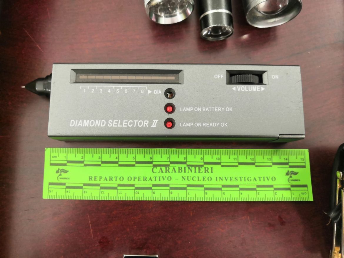 La successiva perquisizione, presso il domicilio, consentiva di individuare le chiavi di un’autovettura BMW parcheggiata nelle vicinanze dello stabile. Una volta aperta, dietro il sedile posteriore e nel portabagagli venivano scoperti numerosi arnesi atti allo scasso ed un apparecchio per accertare la caratura dei diamanti.