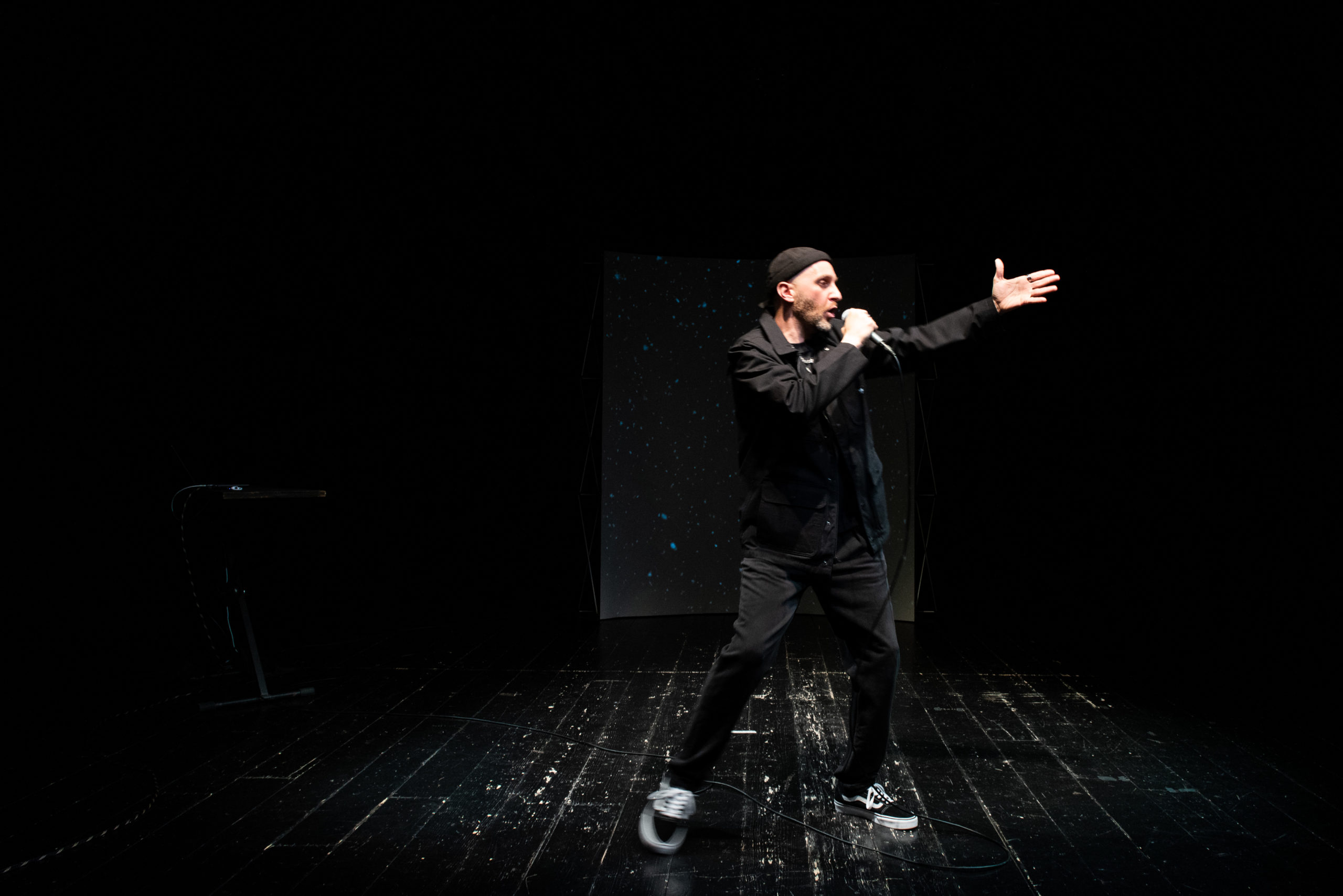 In scena un fondale su cui nevica per tutto il tempo. Fra i fiocchi di neve compaiono delle fotografie scattate in Russia intorno al 2004. Teodoro fa un elenco di artisti che non possono tornare a casa e racconta degli anni che ha vissuto in Russia. In questo racconto c’è una poesia, di Aleksander Pushkin, il frammento del suo romanzo “Il negro di Pietro il Grande”, alcune poesie di Ivan Vyrypaev, alcuni sketch di uno stand up comedian bielorusso. Ma il vero protagonista è il “giovane artista” proveniente da un paese di provincia poverissimo dove in inverno fanno meno 50 gradi. Il “giovane artist” è riuscito a diventare un comico di successo. Si esprime come un teppista di provincia e rischia parecchio ogni volta che sale sul palco.