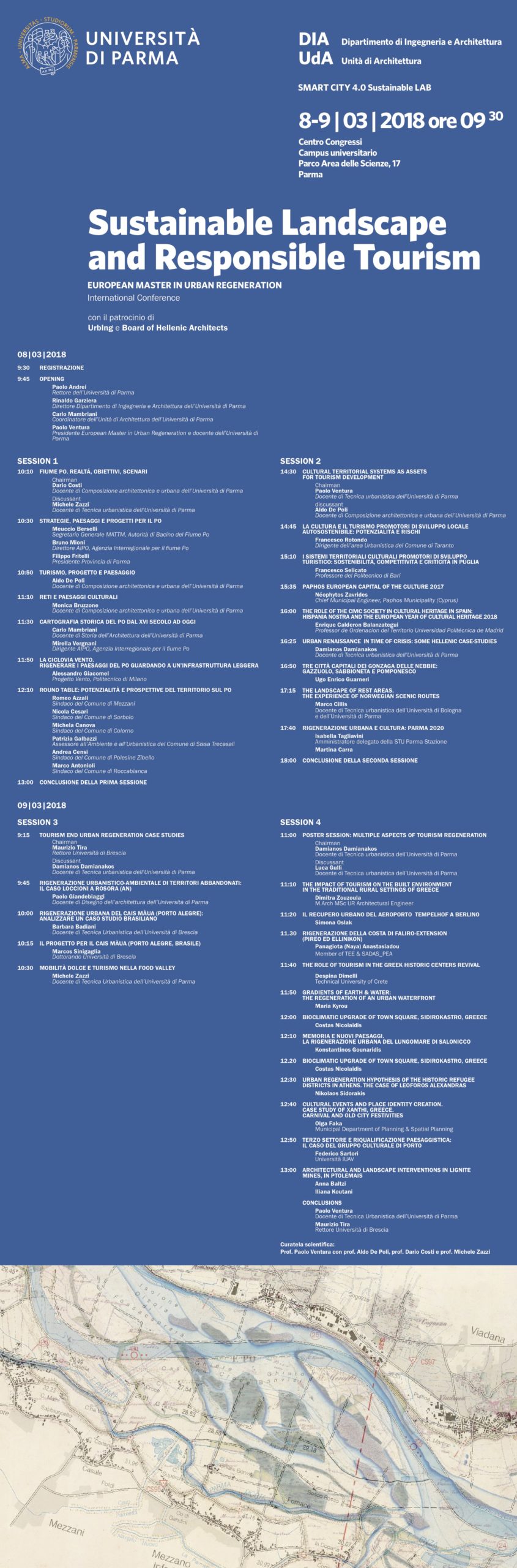 La relazione tra paesaggio e turismo è al centro del Convegno internazionale che si svolgerà l’8 e il 9 Marzo al Campus universitario di Parma con la curatela scientifica del prof. Paolo Ventura con i professori Aldo De Poli, Michele Zazzi e Dario Costi dell’Unità di Architettura del DIA – Dipartimento di Ingegneria e Architettura dell’Ateneo, organizzato dall’European Master in Urban Regeneration in collaborazione con il costituendo Smart City 4.0 Sustainable Lab. Il Master con la presidenza di Paolo Ventura e il Laboratorio di ricerca sotto la direzione di Dario Costi sono due realtà attive di studio e di verifica sul campo che stanno insieme promuovendo una riflessione articolata sulla città contemporanea capace di ragionare sulle sue prospettive di governo e sulla trasformazione intelligente e sostenibile del territorio.