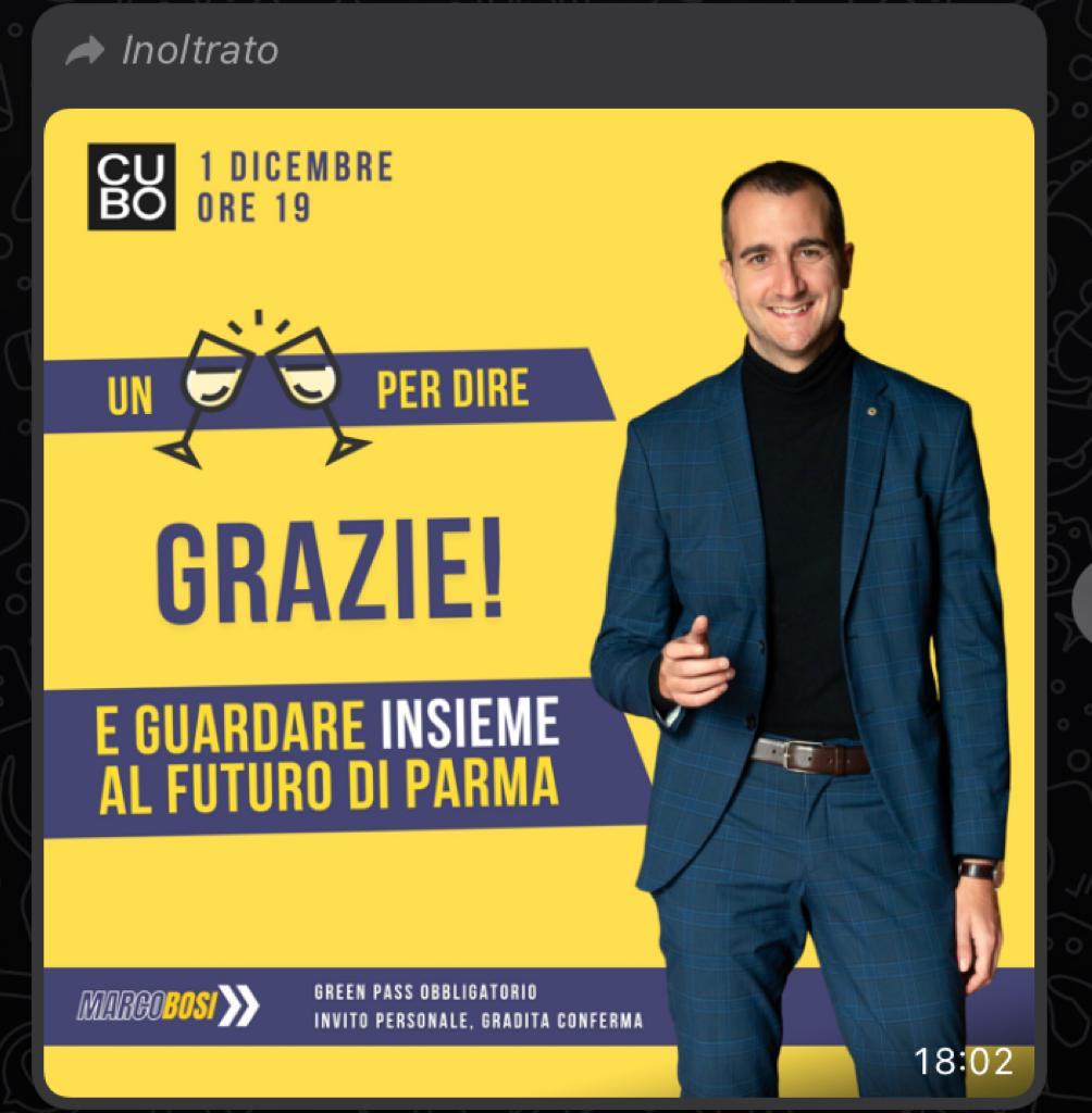 La tipologia di iniziativa e il titolo della serata “Guardare insieme al futuro di Parma” hanno suscitato in alcuni l’idea che l’evento sia l’inizio della campagna elettorale di Bosi (… cosa che, tra l’altro, non dovrebbe neppure apparire strana o stupefacente, visto che siamo a pochi mesi dal voto delle comunali).