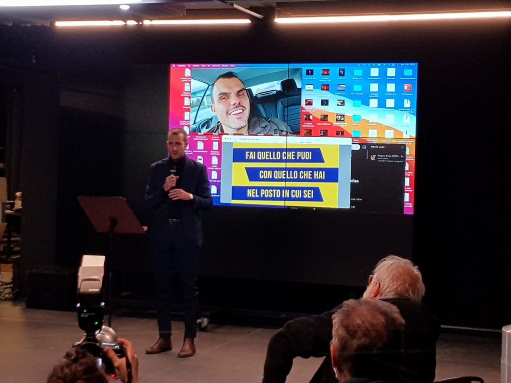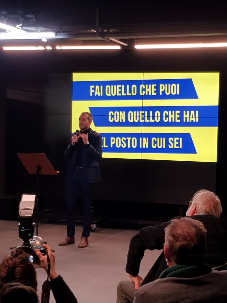 Bosi ha parlato con dietro una carrellata di foto di momenti importanti della sua attività amministrativa. L’intervento si è concluso con la citazione “Fai quello che puoi, con quello che hai, nel posto in cui sei” di Theodore Roosevelt. PrD