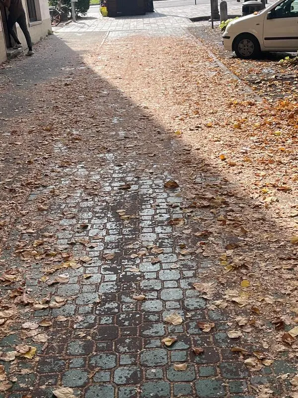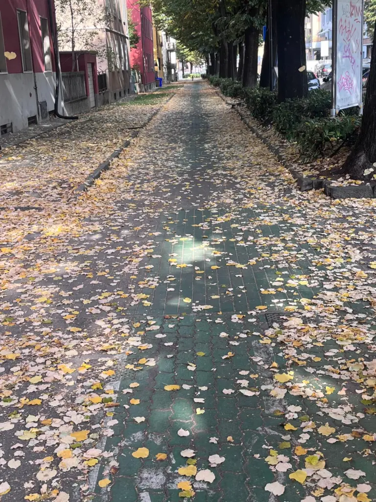 Complice la pioggia dei giorni scorsi e la nebbia che inizia a calare sulla città, i marciapiedi e le piste ciclabili si sono ritrovati ricoperti di foglie che, da secche sono diventate umide e scivolose.