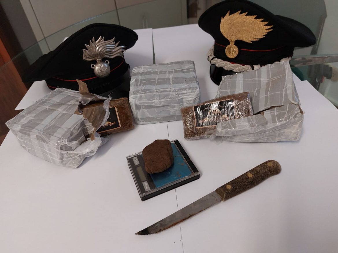 La successiva perquisizione domiciliare, ha consentito di sequestrare ulteriore sostanza stupefacente, in particolare oltre 730 grammi di hashish, suddivisi in panetti, ed un bilancino di precisione. Dopo le formalità di rito relative al suo arresto, l’uomo è stato sottoposto agli arresti domiciliari presso la sua abitazione a disposizione dell’Autorità Giudiziaria.
