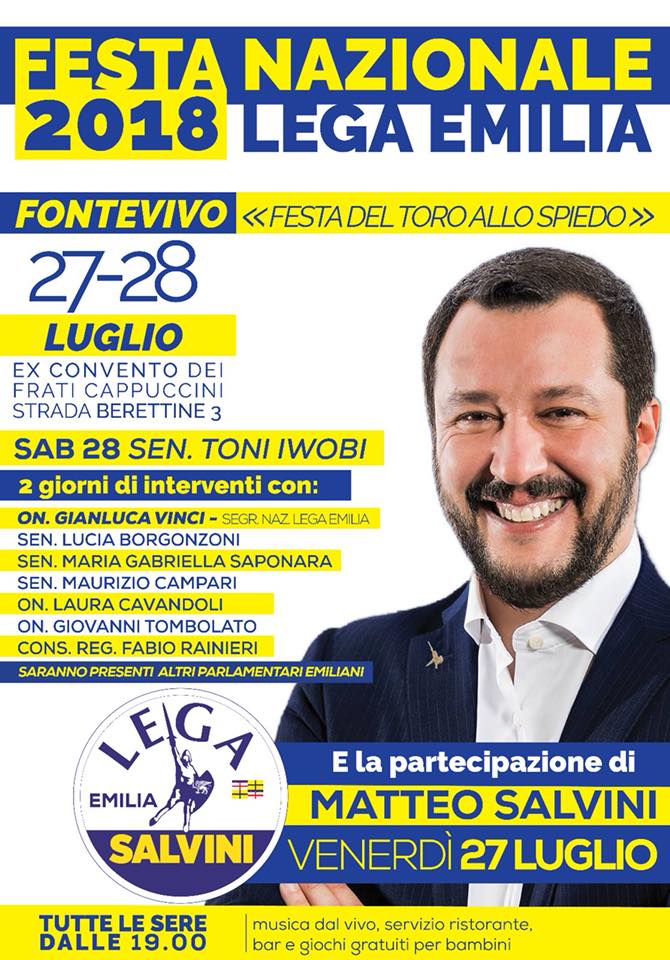Il 27 e il 28 luglio si terrà a Fontevivo la Festa nazionale 2018 della Lega Emilia, “La festa del toro allo spiedo”