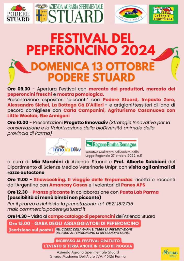 Domenica 13 ottobre si terrà c/o il Podere Stuard di Parma, un evento che durerà tutta la giornata interamente dedicato al peperoncino.