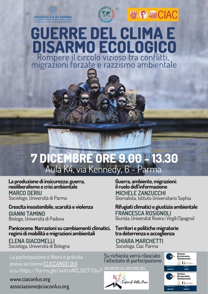 Il Convegno che si terrà il 7 dicembre alle ore 9 presso Università di Parma, Via Kennedy 6, propone di riflettere sulle profonde connessioni tra cambiamento climatico, conflitti e migrazioni, provando a gettare una luce, culturale e politica, sulle responsabilità del Nord globale e sulle possibili piste da intraprendere per rompere il circolo vizioso in cui siamo tutti intrappolati. Il cambiamento climatico è al contempo causa e prodotto di enormi squilibri tra il Nord e il Sud del mondo.