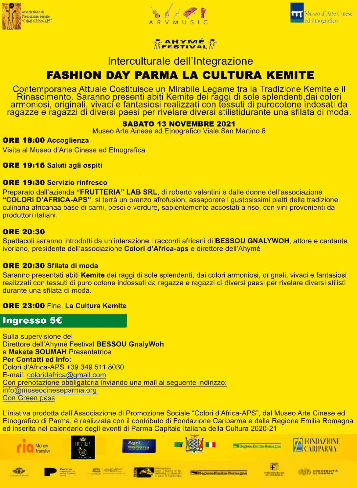 Al fine di favorire la convivialità è previsto un rinfresco prima della presentazione degli abiti kemite con il contributo di Ria Money transfer, La Frutteria Lab SRL, Agri Banana.