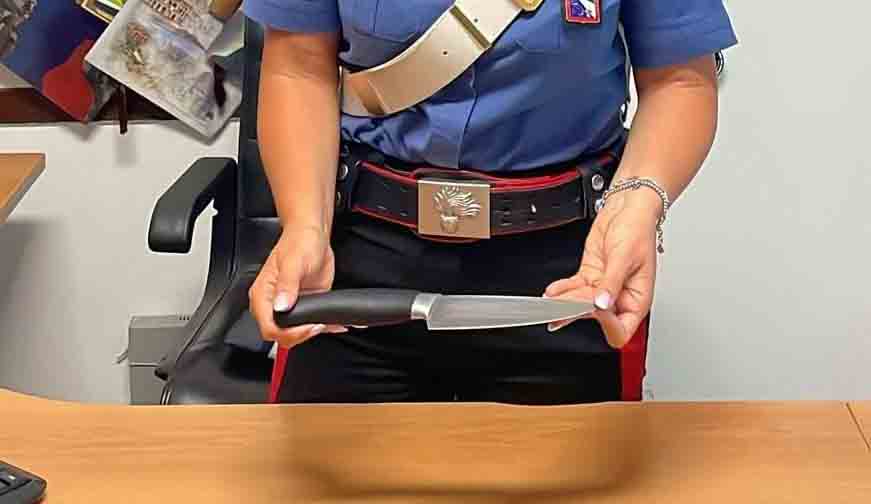 Alla vista della pattuglia, il 40enne ha nascosto qualcosa sotto la giacca, rientrando all’interno dell’abitazione. Ma ormai era troppo tardi ed il controllo effettuato nell’immediatezza ha consentito di verificare che l’uomo oltre ad aver “oltrepassato” i confini e le prescrizioni aveva portato fuori dalla propria abitazione un grosso coltello da cucina che, a suo dire, gli serviva “per difesa personale”, atteso che quel passante lo aveva messo in allarme.