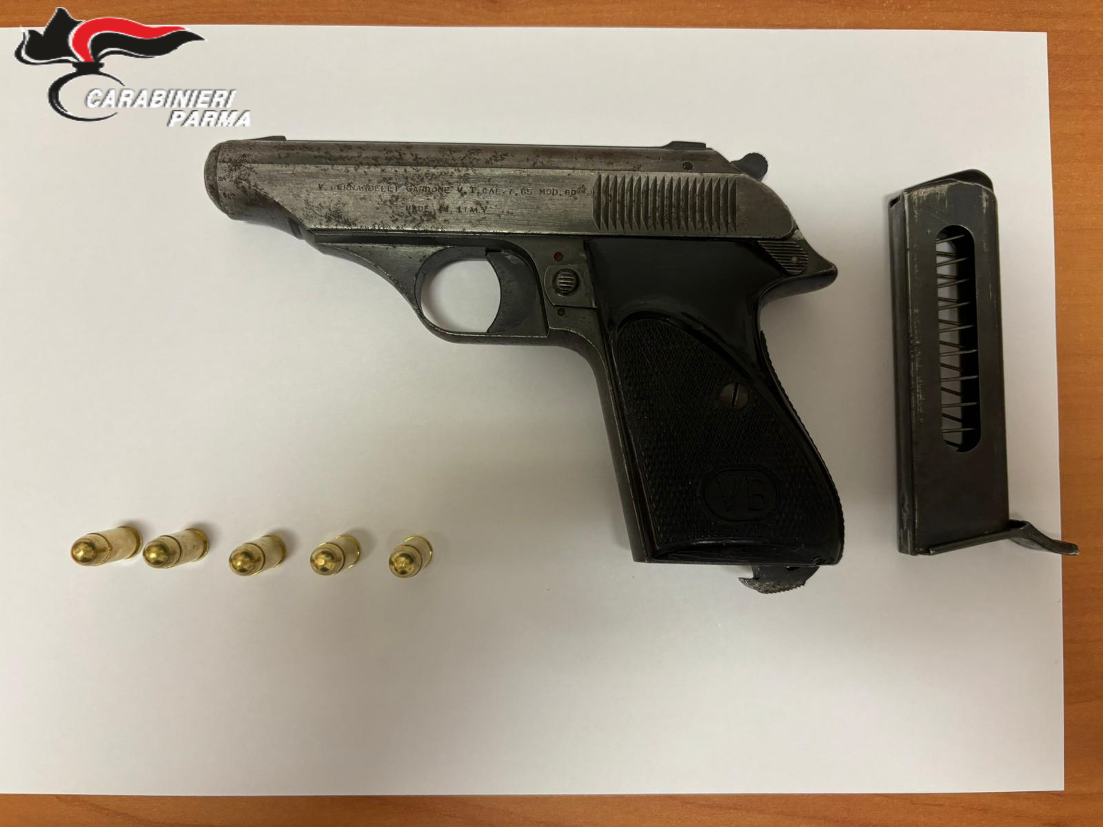 A questo punto, i militari, hanno approfondito il controllo sul conducente ed hanno rinvenuto, infilata nella cintura dei pantaloni una pistola calibro 7,65 con matricola abrasa, completa di caricatore contenente 5 proiettili, dei quali uno già posizionato “in canna” e pronto per essere esploso.