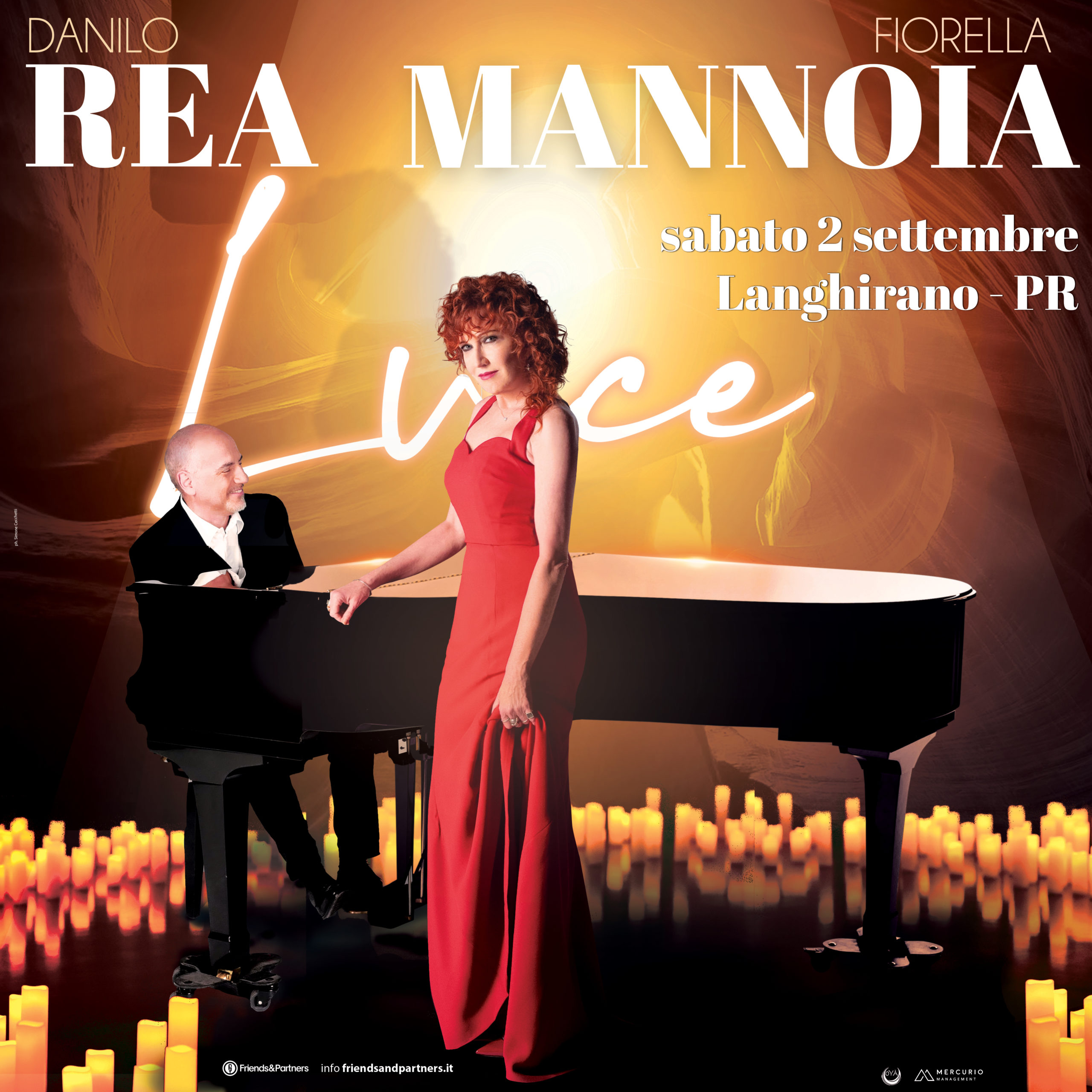 Il consolidato sodalizio tra Mannoia e Rea si rinnova, dando vita ad un concerto unico, perfetto nella sua essenzialità: solo la voce di Fiorella, tra le più grandi cantautrici ed interpreti della canzone italiana, e il piano di Danilo, uno dei musicisti jazz più apprezzati del nostro paese e non solo, in grado di spaziare su qualunque repertorio con il suo estro e la sua sensibilità musicale.