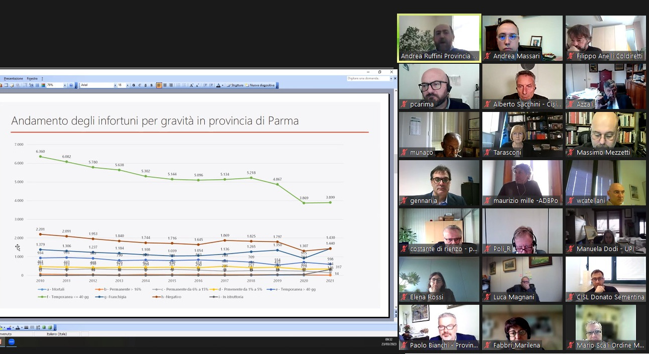 Il dirigente provinciale Andrea Ruffini ha ricordato che nel Parmense già opera il “Network fra i Servizi di prevenzione e Protezione delle Pubbliche amministrazioni del territorio”, tramite l’accordo quadro siglato nel 2018 da Provincia, Prefettura, Comune di Parma, Comando dei Vigili del Fuoco, Ausl, Autorità di Bacino del Fiume Po, Università, Uffici veterinari, Asp, Istituti penitenziari.