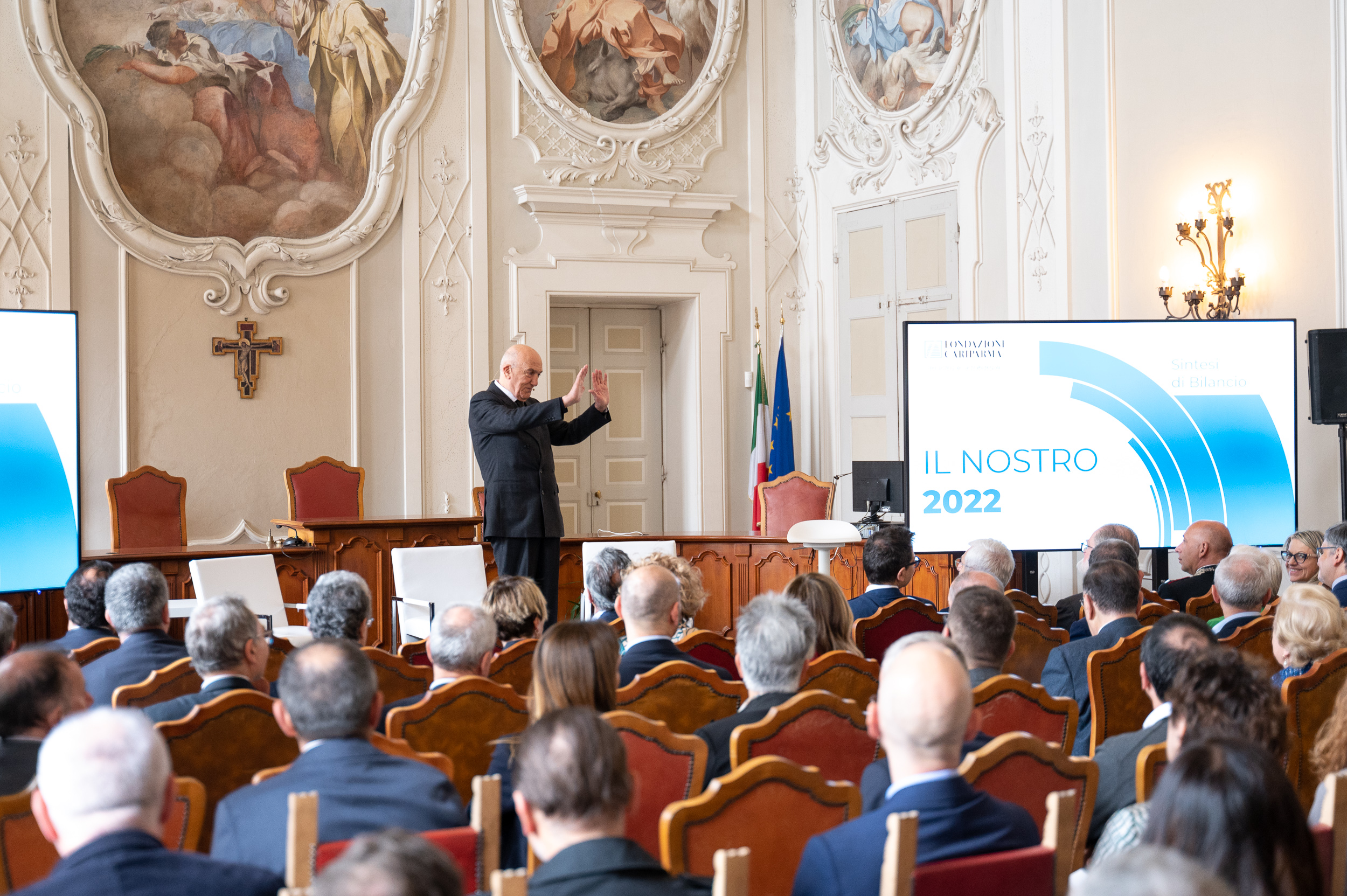 È stato presentato oggi presso la sala udienze della sede del Tar – di Palazzo Pallavicino – il Bilancio 2022 di Fondazione Cariparma. Alla presenza di Franco Magnani, Presidente di Fondazione Cariparma, Maria Laura Bianchi Vice Presidente, Giovanni Fracasso, Marcella Saccani e Daniele Pezzali, membri del Consiglio di Amministrazione e Antonio Lunardini, Direttore Generale, sono stati presentati il Bilancio Economico Finanziario e il Bilancio di Missione, che riassume l’attività svolta dagli organi nell’ultimo anno, comprensivo del Report di Monitoraggio e Valutazione attuato sui progetti sostenuti.