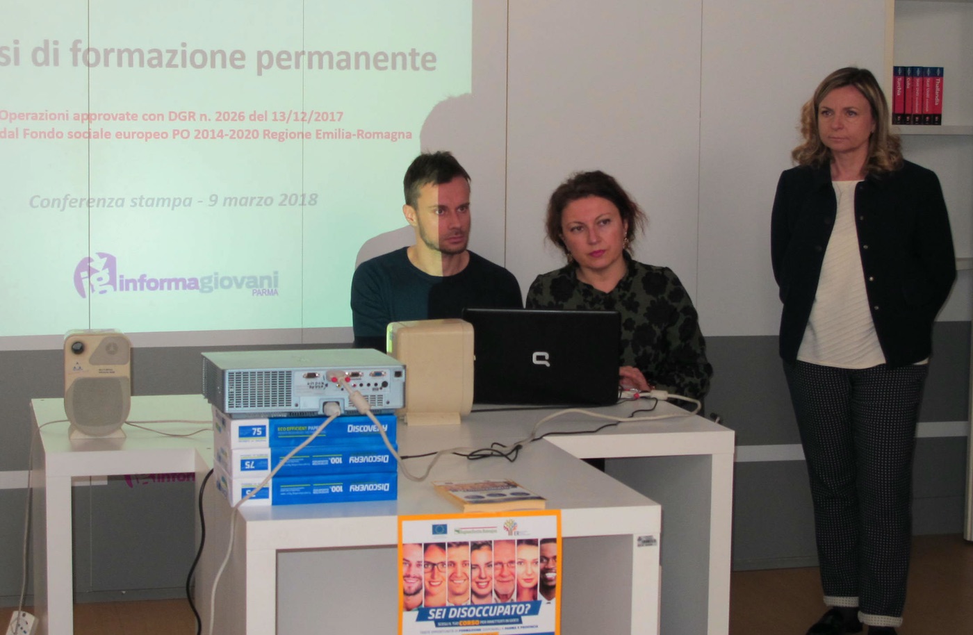 Politiche attive del lavoro a Parma e provincia. Le opportunità formative cofinanziate con risorse del Fondo Sociale Europeo PO 2014-20120 e della Regione Emilia Romagna per disoccupati e aspiranti imprenditori sono state presentate stamattina dall’assessora alla Formazione del Comune di Parma Ines Seletti e da Barbara Baistrocchi coordinatrice dell’Informagiovani di Parma.