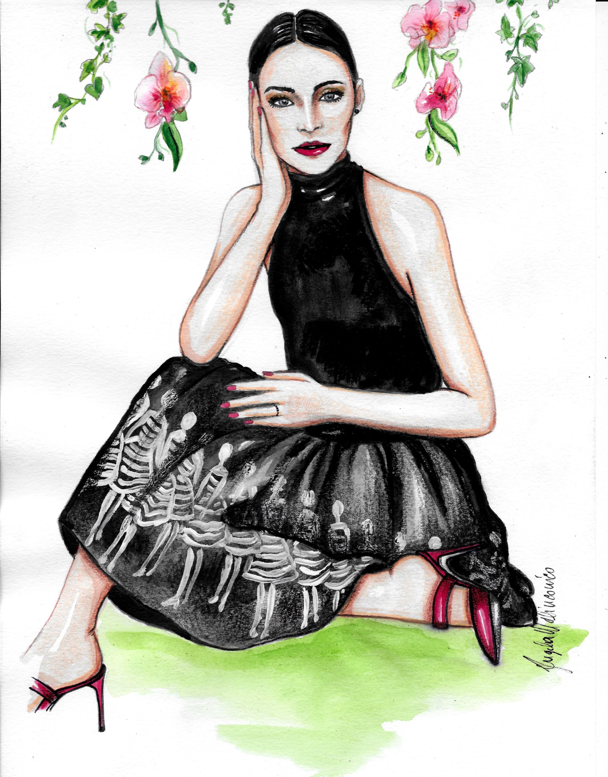 Nella sessione immagini qui sotto troverete l’omaggio che l’illustrazione Angela Malinconico ha voluto dedicare alla stilista sentendosi fortemente colpita dell’atmosfera bucolica e dagli abiti raffinati e preziosi.