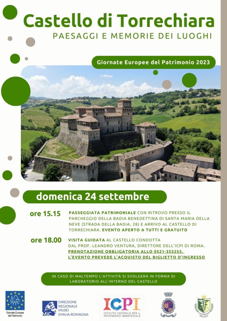 Sabato 7 ottobre il pubblico sarà invece invitato ad una giornata di riflessione sul paesaggio organizzata dalla Direzione Musei Emilia-Romagna insieme all’Istituto Centrale per il Patrimonio Immateriale e alla Scuola di specializzazione in Beni demoetnoantropologici dell’Università degli Studi di Perugia (in convenzione con le università di Basilicata, Firenze, Siena e Torino), al Comune di Langhirano, alla Pro Loco di Langhirano e alla comunità di Torrechiara.