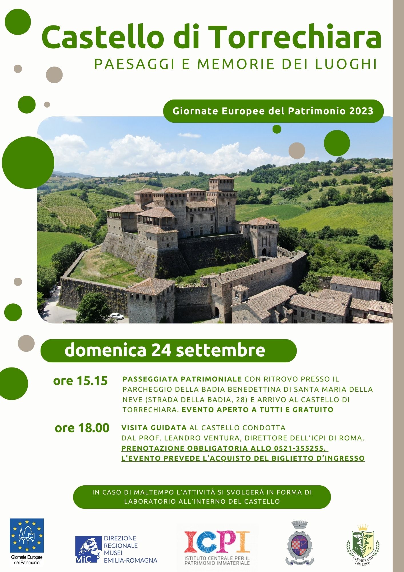 In caso di maltempo è stata strutturata una attività laboratoriale per adulti che si svolgerà all’interno delle sale del Castello di Torrechiara.