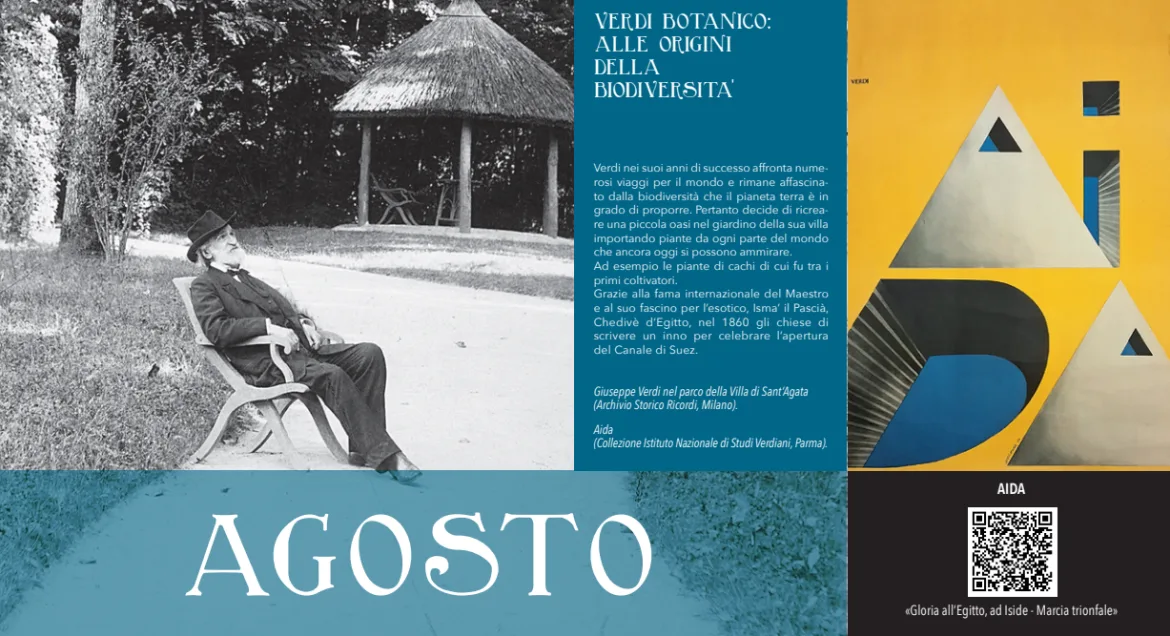 Musica e agricoltura, due passioni che si intrecciano: ogni mese del calendario abbina un episodio della vita contadina di Verdi a un’aria tratta da una sua opera, accessibile tramite QR code. Nella quiete di Sant’Agata, Verdi supervisionava la costruzione della villa, l’allevamento del bestiame, le rotazioni delle coltivazioni e persino innovativi sistemi di irrigazione importati dall’Inghilterra. Ogni albero del parco veniva simbolicamente dedicato a un’opera: il platano a Rigoletto, la quercia a Il Trovatore, il salice a La Traviata, come se la musica potesse radicarsi nella natura stessa.