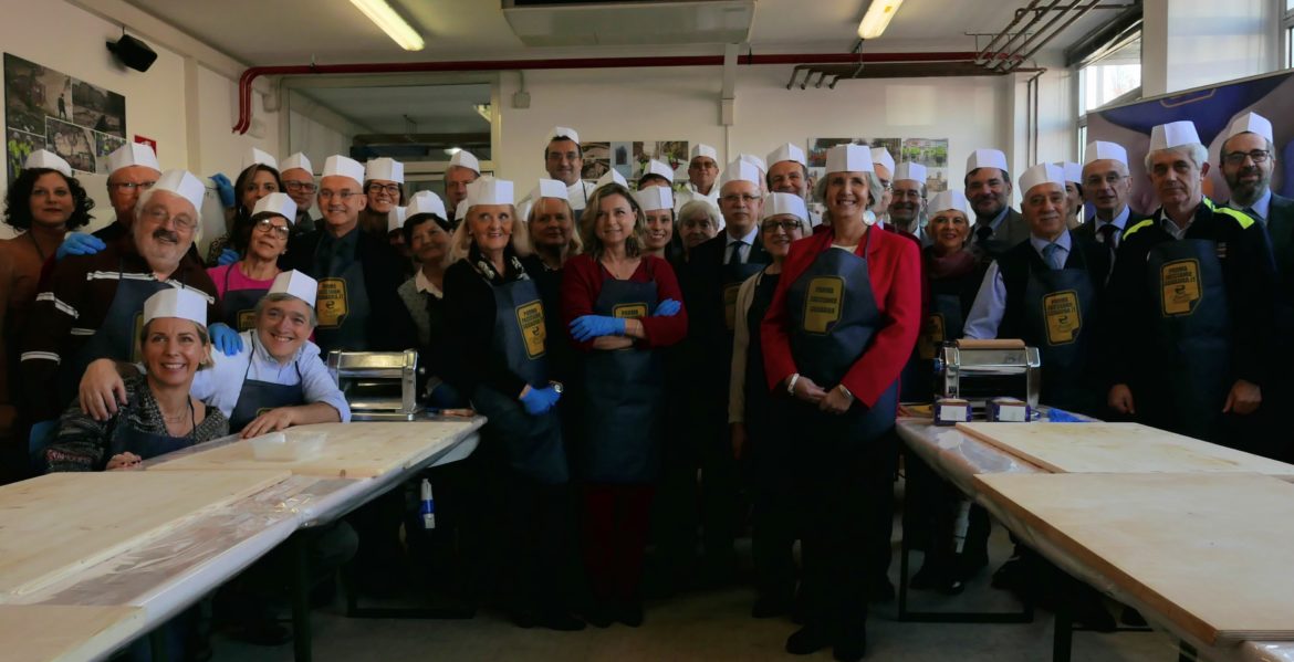 Nelle impastatrici, milleduecento chili di farina, dodicimila uova pastorizzate, trecento chili di formaggio e poi carne, pan grattato… Tutto ciò che serve, compresi vassoi, guanti e cuffiette è stato donato da Conad Centro Nord che, anche quest’anno, non ha indugiato a metterci il cuore.