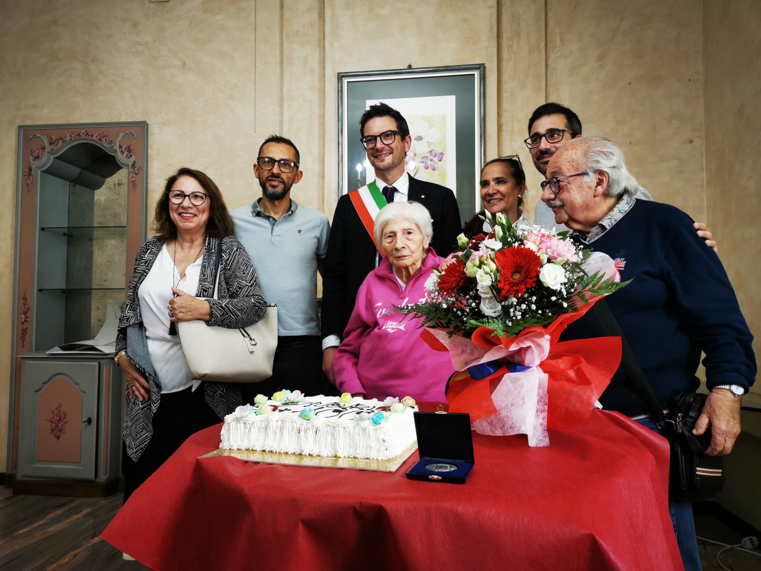 Ha voluto partecipare al momento di festa anche il Sindaco Michele Guerra che al taglio della torta ha portato gli auguri della città alla signora che ha attraversato il secolo ancora in buona salute, e ai tre figli Vincenzo, Felice e Maria ai quali si è dedicata per tutta la vita.