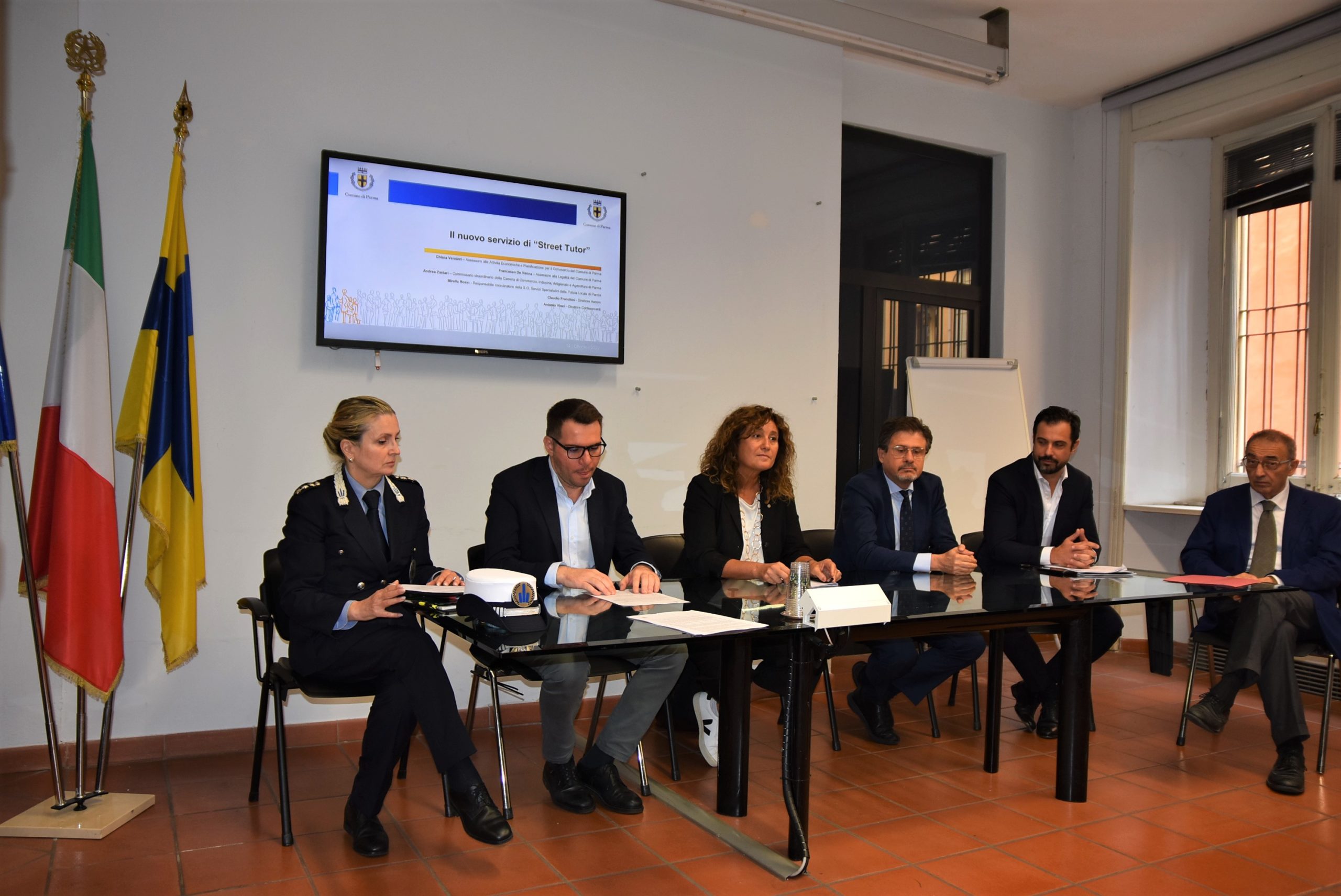 Frutto di un gioco di squadra tra Comune, Associazioni di Categoria e CCIAA, una nuova figura sul fronte della sicurezza andrà a monitorare il centro storico di Parma. Il progetto pilota è stato annunciato stamattina in conferenza stampa da Chiara Vernizzi – Assessora alle Attività Economiche e Pianificazione per il Commercio del Comune di Parma Francesco De Vanna – Assessore alla Legalità con delega alla sicurezza del Comune di Parma, Andrea Zanlari – Commissario straordinario della Camera di Commercio, Industria, Artigianato e Agricoltura di Parma, Mirella Rosin Sostituto Commissario del Corpo di Polizia Locale di Parma Claudio Franchini– Direttore Ascom e Antonio Vinci – Direttore Confesercenti.