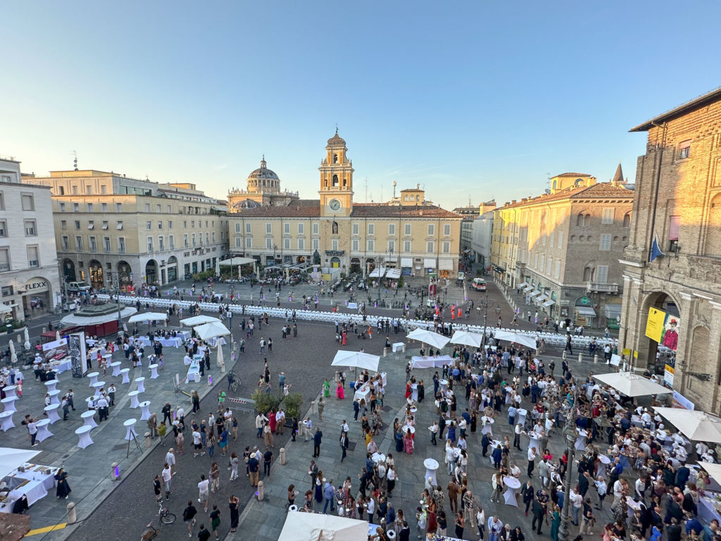 Anche quest’anno il centro storico di Parma si è trasformato in un ristorante gourmet sotto le stelle. Una tavola lunga 400 metri, allestita tra Strada della Repubblica e Piazza Garibaldi, ha accolto i mille ospiti in un percorso enogastronomico d’eccellenza. Un successo annunciato dall’entusiasmo con cui, ad inizio luglio, sono andati sold out tutti i biglietti sul circuito di Vivaticket.