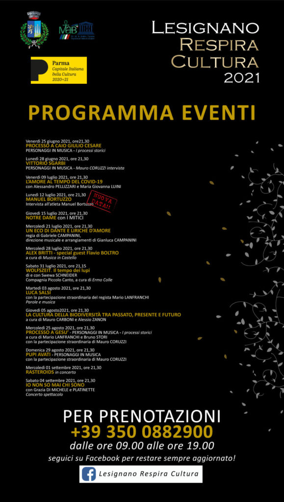 Si ringrazia per il sostegno all’iniziativa le seguenti attività: Bucci, Terre Ducali Parma, Hauser Carni spa, Hauser Prosciutti srl, Rural Biodiversità Agricola, Navatta Group, Eurodisossatura, Unogas, Gruppo Zatti, Alberini Tornitura – Fresatura, Rettifiche Meccaniche Tirelli, Costa Giuseppe Calcestruzzi, Real Italy Food, Marco Ceresini amministrazioni condominiali, Tipolitotecnica srl, S. Ilario Prosciutti, Assicoop Emilia Nord, Unipol Sai Assicurazioni, Effedue Meccanica di precisione e Impresa Costruzioni Araldi.