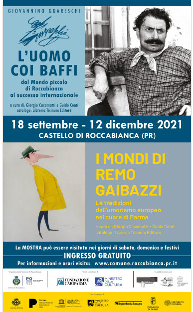 Il Castello di Roccabianca dal 18 settembre al 12 dicembre 2021 nell’ambito delle iniziative di Parma Capitale italiana della Cultura 2020+21, ospiterà due mostre parallele organizzate dal Comune di Roccabianca, titoli: “Giovannino Guareschi, l’uomo coi baffi” e “I mondi di Remo Gaibazzi“, a cura di Giorgio Casamatti e di Guido Conti.