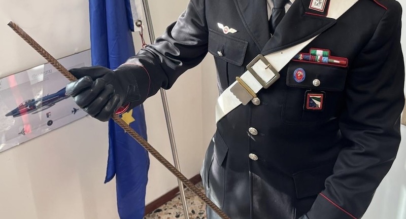 Nascosto sotto la felpa del 22enne è stato rinvenuto un tondino in ferro zigrinato ad uso edile, lungo 90 cm e con un diametro di 12 mm del quale non ha saputo giustificarne il possesso, ritenuto, date le sue caratteristiche intrinseche, potenzialmente idoneo a recare offesa alla persona se utilizzato in modo improprio.
