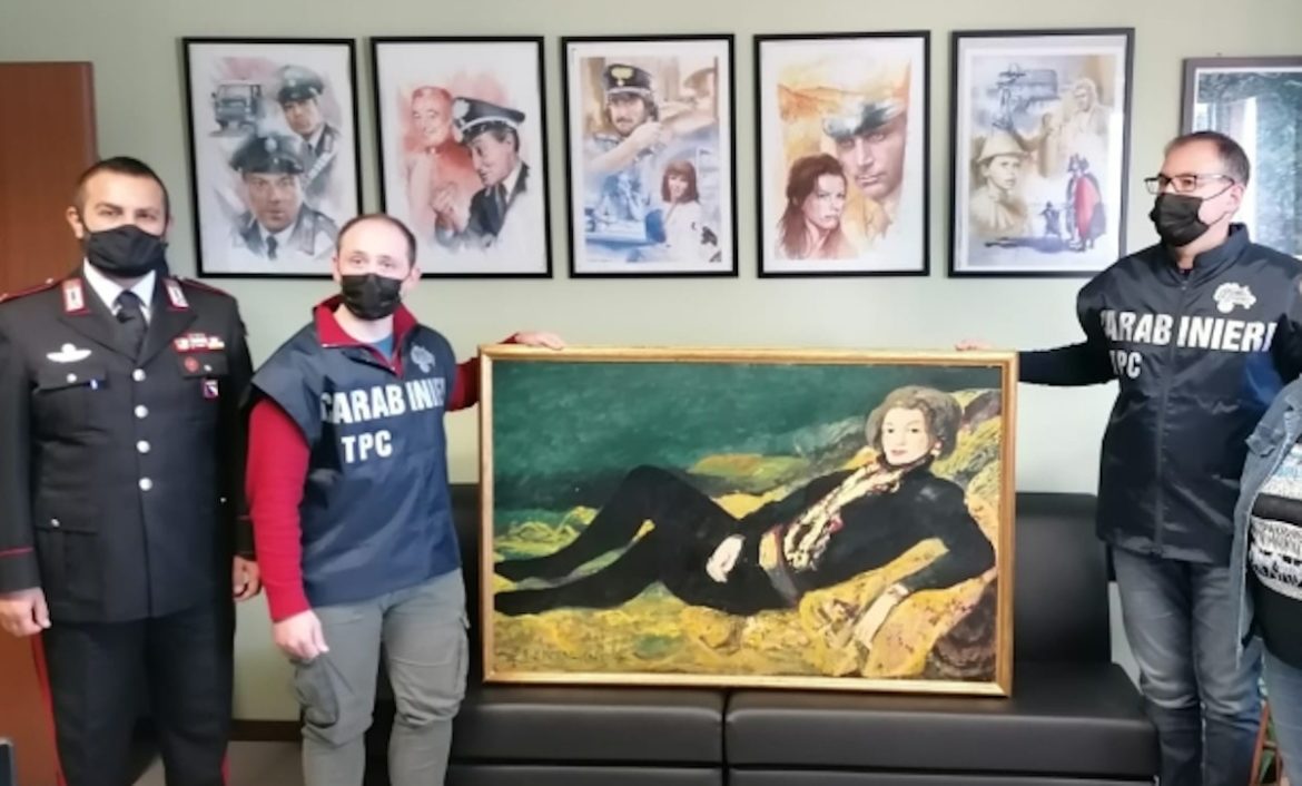 Successivi accertamenti disposti dall’Autorità Giudiziaria ed eseguiti in collaborazione con la Stazione Carabinieri di San Polo d’Enza (RE) e i Nuclei TPC di Monza e Venezia, hanno confermato l’ipotesi investigativa iniziale e chiarito che la persona ritratta nel dipinto sequestrato era la moglie dello scrittore, poeta e critico d’arte Raffaele Carrieri (1905-1984), i cui eredi avevano venduto l’opera, acquistata dalla proprietaria nei primi anni Novanta.