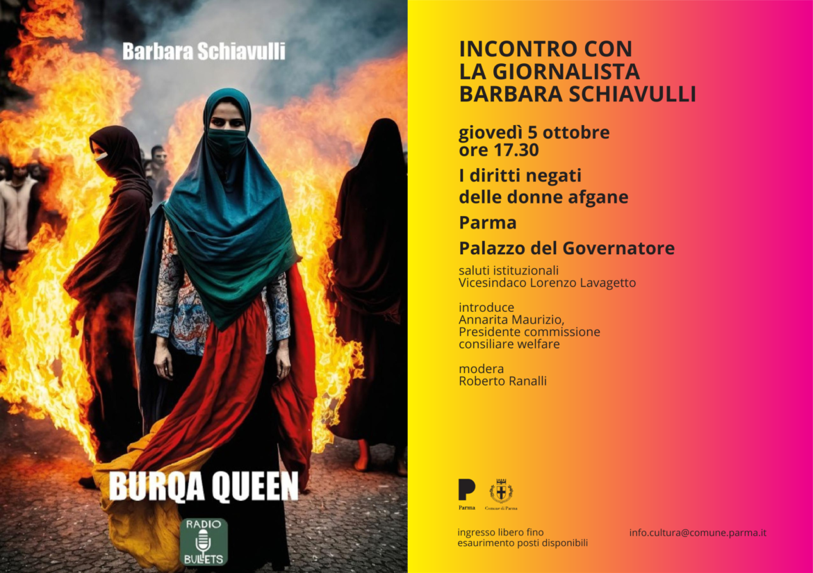 Giovedì 5 ottobre, alle 17.30, all’Auditorium “Carlo Mattioli” del Palazzo del Governatore, si terrà l’incontro “I diritti negati delle donne afgane” con la giornalista e scrittrice Barbara Schiavulli che affronterà i temi della violazione dei diritti umani e il ruolo della donna nelle zone di guerra, a partire dalla lunga esperienza vissuta come corrispondente di guerra in Afghanistan e dal suo ultimo libro “Burqa Queen”, in cui dà voce a chi quotidianamente lotta per la conquista di libertà fondamentali come studiare, lavorare, amare e scegliere.