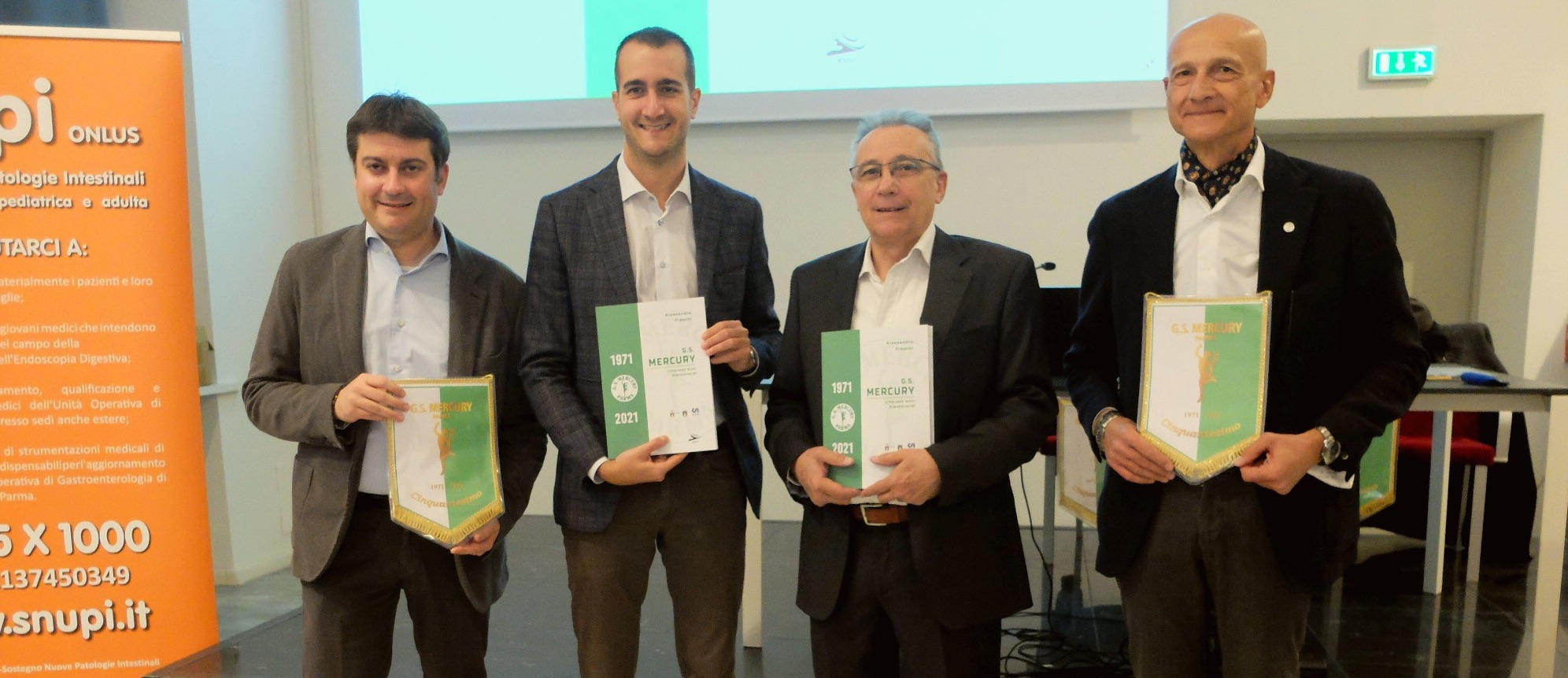 La giornata, organizzata da CSI e Coni con il patrocinio del Comune di Parma, si è sviluppata attorno alla presentazione del volume di Alessandro Freschi “G.S.Mercury, cinquant’anni biancoverdi, 1971 – 2021”, nato con l’intento di ripercorrere la storia del gruppo sportivo attraverso immagini e racconti dei protagonisti. La presentazione è stata moderata da Vittorio Rotolo, giornalista della Gazzetta di Parma e al tavolo dei relatori sono intervenute anche le storiche figure del Presidente Stefano Bertolini e del fondatore, e attuale Direttore Generale, Daniele Freschi.