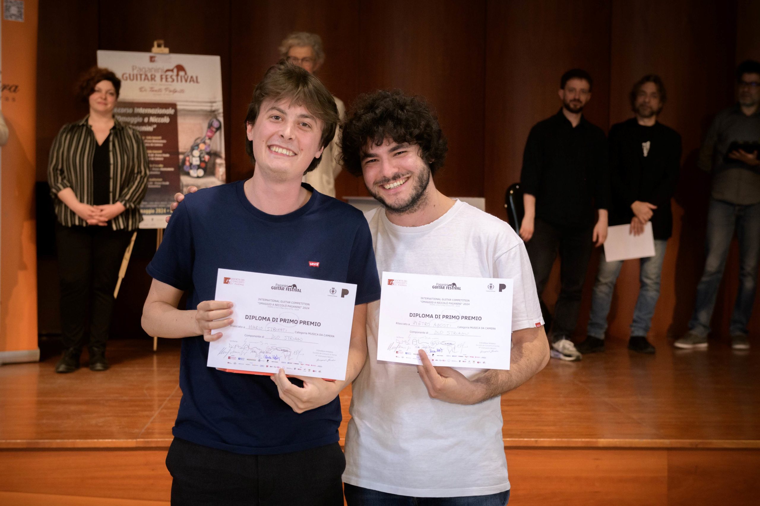 Sul podio del prestigioso concorso anche i solisti: Michele Festa, secondo, Nicolas Falabella e Yuri Santangelo, terzi ex aequo. Per la musica da camera: secondo l’Obsequio Duo formato dai chitarristi Davide Prina ed Enrico Tripodi; terzo il Duo Aurora Martini-Alessandro Dominguez, voce e chitarra; quarto il DuJon formato da Jonatan Jakabovics, chitarra, e Jonathan Zipperle, violino (Ungheria/Svizzera). Nella sezione chitarra romantica: secondo premio per Kolija Gibbs, terzo a pari merito per Sergio Camelia e Samuele Fontana.