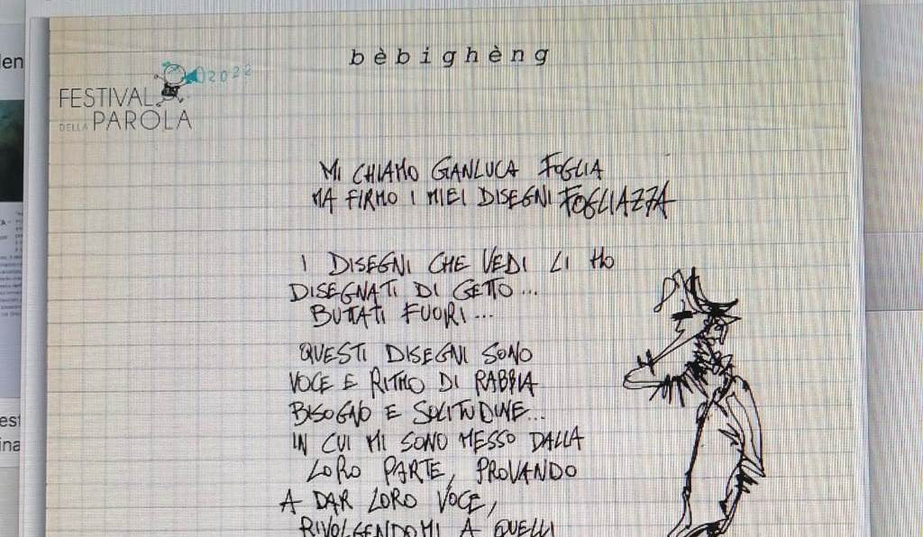 Nell’ambito delle iniziative collaterali al FESTIVAL DELLA PAROLA – IX edizione, è in programma per venerdì 1° luglio, alle ore 18:00, negli spazi all’aperto del Circolo Pro Parma in via Ghirarduzzi 2, a Moletolo (Parma), l’inaugurazione della mostra “BÉBIGHÉNG. I figli degli altri”, personale di Gianluca Foglia “Fogliazza”.