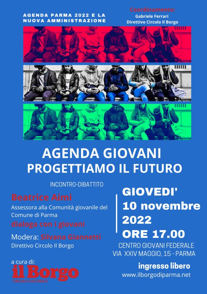 Si terrà giovedì 10 novembre alle ore 17.00 al Centro Giovani Federale (via XXIV maggio, 15/A), l’incontro-dibattito – aperto al pubblico – dal titolo “Agenda Giovani. Progettiamo il futuro”, promosso dal Circolo “Il Borgo”. Beatrice Aimi, Assessora alla Comunità giovanile, dialogherà con alcuni ragazzi su idee e proposte per migliorare e arricchire le opportunità di inclusione e di protagonismo giovanile. Modera l’incontro Silvana Giannetti del Direttivo de Il Borgo.