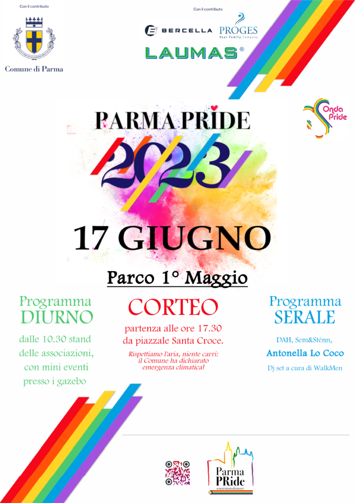 Parma Pride segreteria@parmapride.it — organizzazione@parmapride.it — https://www.parmapride.it — FB e IG: @ParmaPride