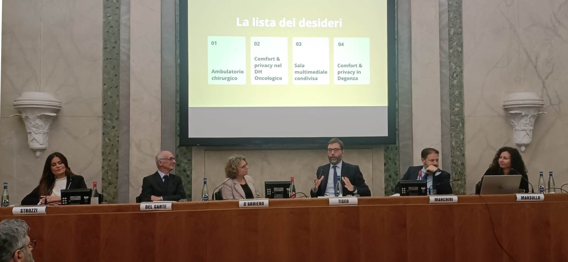 La sala necessita di una progettazione che ne garantisca molteplici utilizzi, in quanto ospiterà convegni e momenti informativo-divulgativi, per il personale sanitario, ma anche per le associazioni di pazienti.