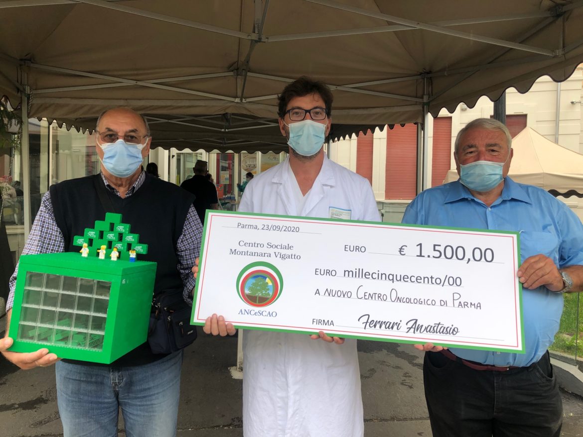 Così il Centro Anziani di Largo 8 Marzo n. 9 ha firmato un mattoncino con una offerta di 1.500 euro deliberata dal Consiglio Direttivo e consegnata con un assegno nel corso di una breve cerimonia cui hanno partecipato il responsabile Attività ambulatoriali oncologiche complesse dell’Azienda Ospedaliero-Universitaria di Parma Marcello Tiseo, il Presidente del Circolo Anastasio Ferrari e il Vice Presidente Giancarlo Bocchi. Il dottor Marcello Tiseo ha ringraziato il Presidente perché tanti mattoncini contribuiranno a migliorare il progetto il cui inizio dovrebbe avvenire entro la fine dell’anno.