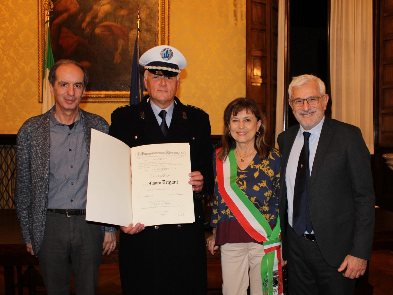 Dal primo gennaio Franco Drigani si godrà la meritata pensione. E proprio sul “finale di carriera”, per il comandante della Polizia locale e responsabile della Protezione civile dell’Unione Pedemontana Parmense, è arrivato un prestigioso riconoscimento: il cavalierato della Repubblica.