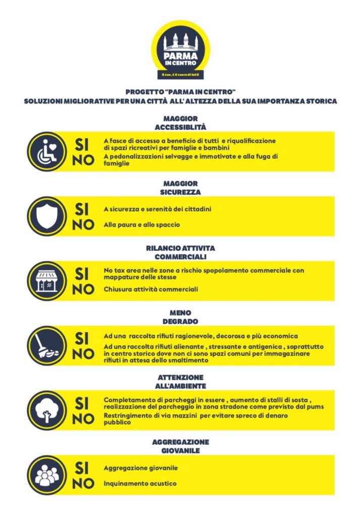 Il comitato Parma in Centro , costituito da 5 membri fondatori : Sandro Milani, Francesca Zanetti, Cristina Menozzi , Vincenzo Siennica e Giacomo Ippolito si può dire che sia nato grazie all’amministrazione comunale principalmente per 2 motivi .