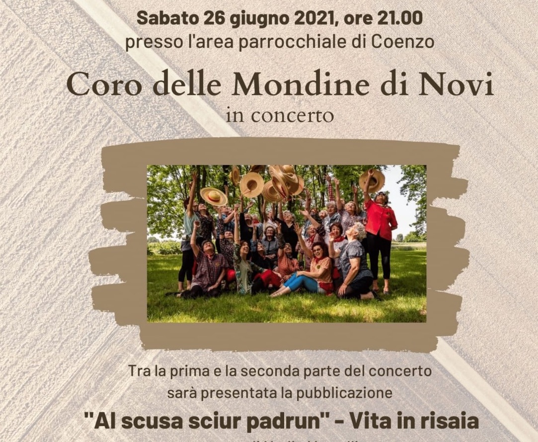 In occasione delle Feste Contadine 2021, sabato 26 giugno alle ore 21 presso l’area parrocchiale di Coenzo (Sorbolo Mezzani), si terrà il concerto del Coro delle Mondine di Novi.
